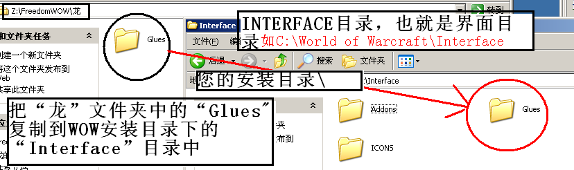 按图解压GLUES目录至INTERFACE目录下。